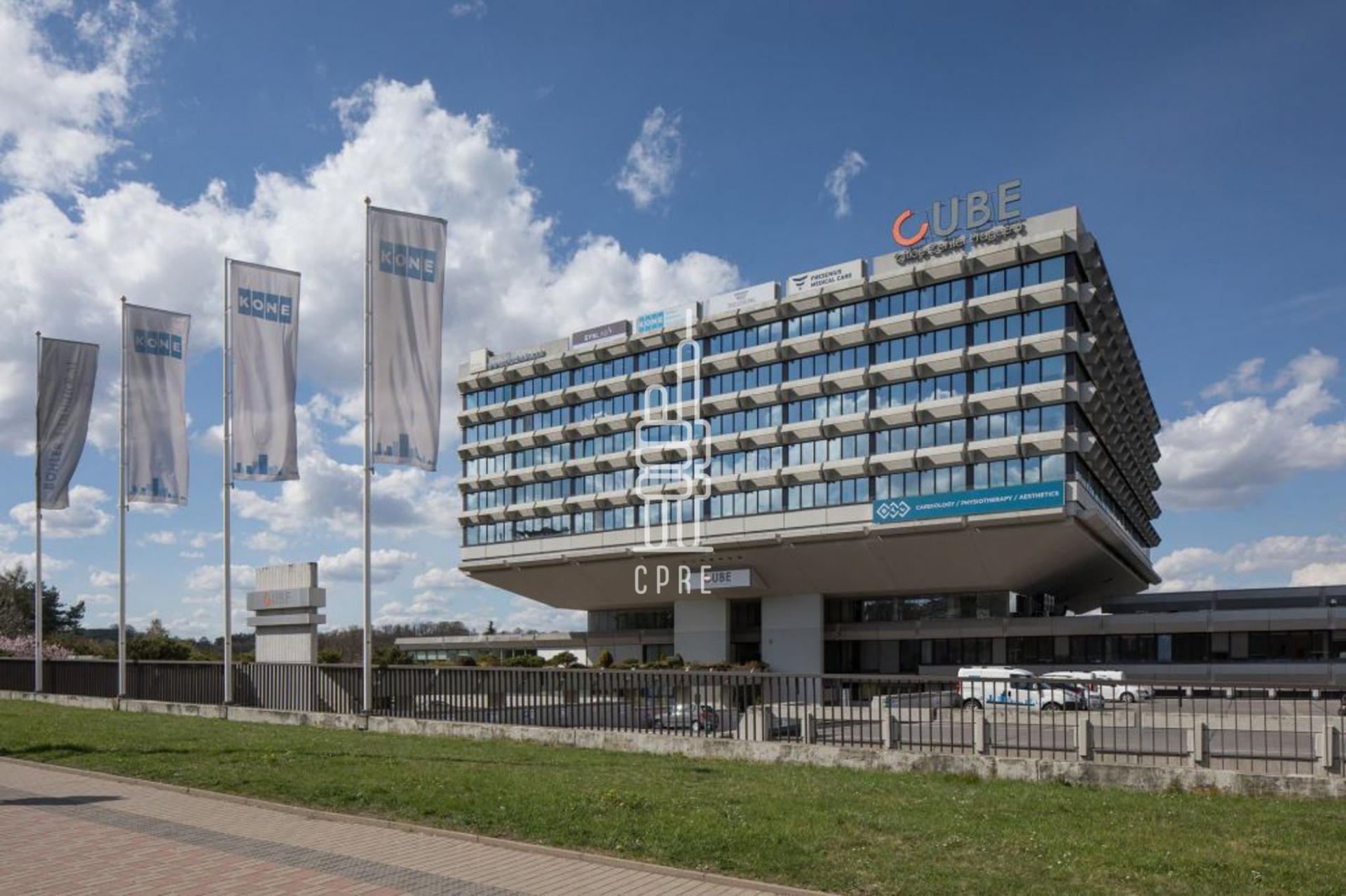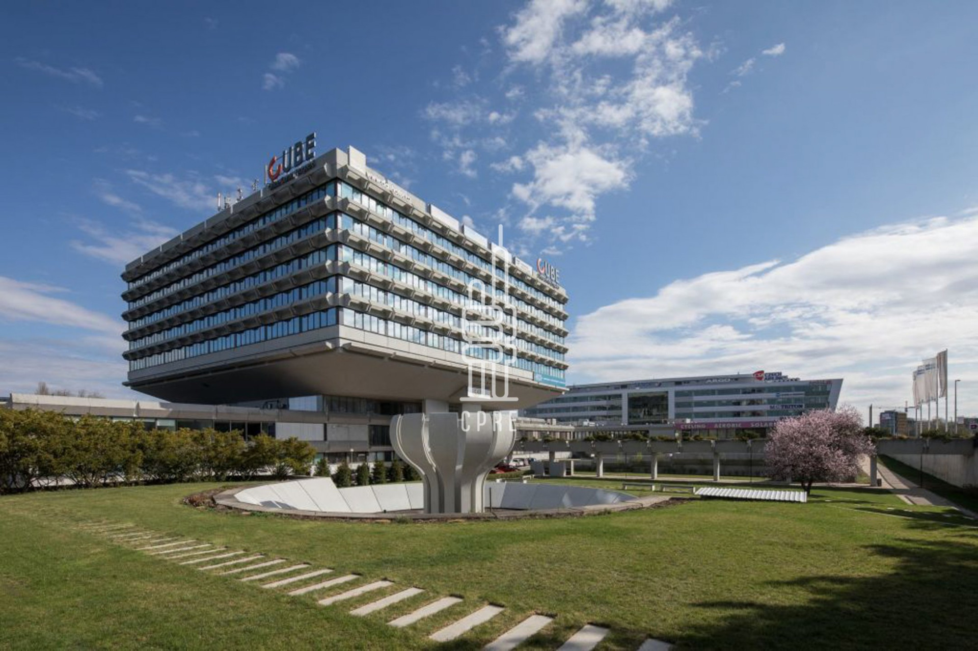 This architecturally interesting building dates back to the 1970s and was designed by prominent architects Stanislav Franco, Jan Nováček and Vladimír Fencl. Currently the building is used for office purposes with adequate technical facilities. The prefabricated building structure offers 7 floors of usable space of more than 20,000 m². The building is divided into a main building of approximately 16,000 m² and an adjacent building of approximately 4,000 m². The property has 362 outdoor parking spaces and 20 garage spaces. In addition, all standard services are offered in buildings of this size. CUBE is located in Vokovice in Prague 6, one of the best located and dynamically developing locations in Prague. The location between the Prague ring road, the airport and the city centre provides tenants with unique and unbeatable advantages. The building is close to the E7 expressway and the D5 motorway and is easily accessible from Evropská Street by car and public transport. Václav Havel Airport is 10 minutes away. Tram and bus connections in the immediate vicinity of the building. Metro station A - Veleslavín 3 minutes walk.